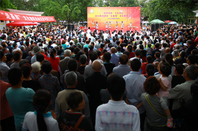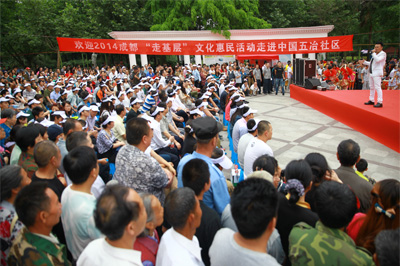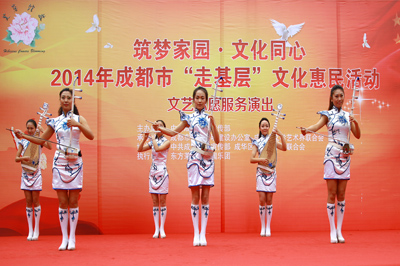 5月25日下午3點,成都市委宣傳部主辦的2014“走基層”文化惠民活動走進五冶社區(qū),在新華公園廣場舉行慰問演出。東方茉莉女子國樂團等知名演藝團體和馬渲子、郭仕軍、何剛等一批國家一級演員、四川青年喜劇演員、男高音歌唱家等本土文化名人到場獻藝。中國五冶集團教培中心選派的舞蹈《歡歌起舞》代表中國五冶集團青年志愿者同臺演出。