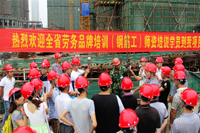 7月9日,四川省農勞辦錢言部長攜全省勞務品牌鋼筋工師資培訓學員到中國五冶集團東方天地項目部學習鋼筋加工、焊接工藝。教培中心主任張旭林等講授相關知識。