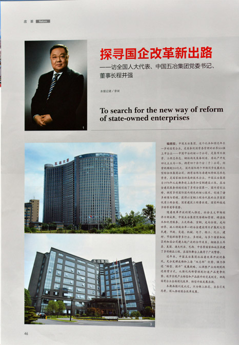 《當(dāng)代中國(guó)》畫(huà)報(bào)2015全國(guó)“兩會(huì)”特刊,以“探尋國(guó)企改革新出路”為題,對(duì)中國(guó)五冶集團(tuán)近年來(lái)轉(zhuǎn)型提升發(fā)展的歷程進(jìn)行了梳理。