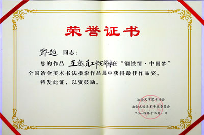 全國冶金美展最佳作品證書