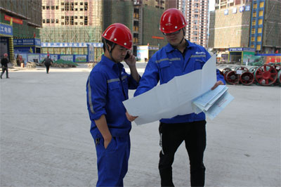 蚌埠槐花園項目現(xiàn)場工作人員正在部署施工方案