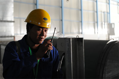 上海寶之云項目現(xiàn)場工施工工人正在對電氣設(shè)備檢修調(diào)試進(jìn)行操作指揮