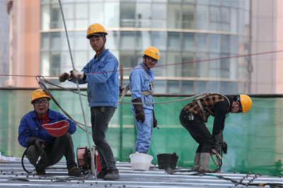 成都新華之星項目正在屋面作業(yè)的工作人員