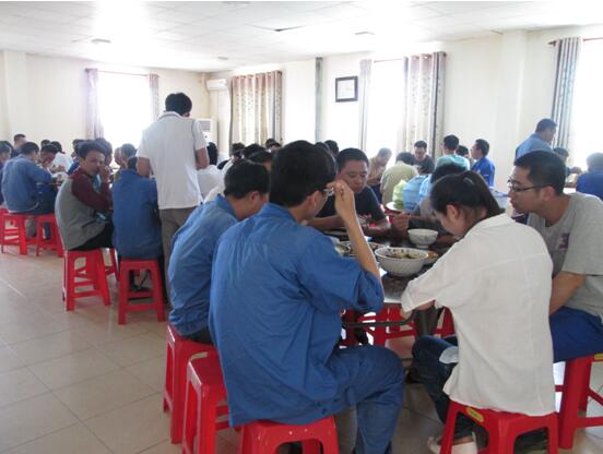 在食堂聚餐的項(xiàng)目部工作人員