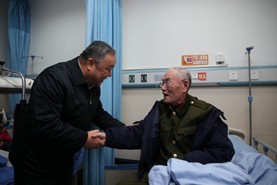 程并強(qiáng)在醫(yī)院看望離休干部榮繼余