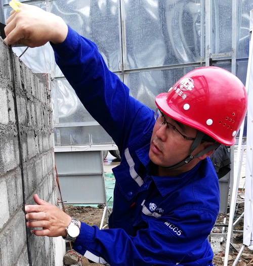 陜西公司-達州蔡坪安全員在檢查腳手架扭矩