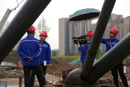 10月1日上午,成都市下起小雨。集團(tuán)公司文化中心記者團(tuán)一行走進(jìn)成都露天音樂公園項(xiàng)目的建設(shè)現(xiàn)場。記者團(tuán)在現(xiàn)場看到,盡管小雨一直淅淅瀝瀝,工地現(xiàn)場也比較泥濘,但各個(gè)作業(yè)面均在正常施工,到處都是一副熱火朝天的景象。