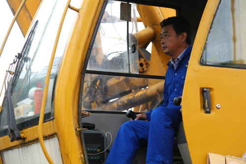 全神貫注的吊裝工人