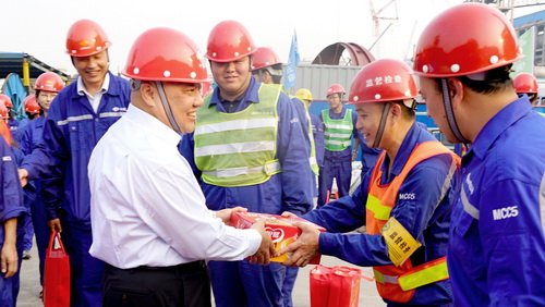程并強一行實地調(diào)研項目現(xiàn)場,詳細了解項目建設(shè)有關(guān)情況,并就施工技術(shù)、工期控制、安全質(zhì)量等問題進行了現(xiàn)場指導。隨后,程并強一行慰問了奮戰(zhàn)在一線的項目職工,為他們送去了水果、食品及生活用品等,并為大家送上節(jié)日的問候與祝福。
