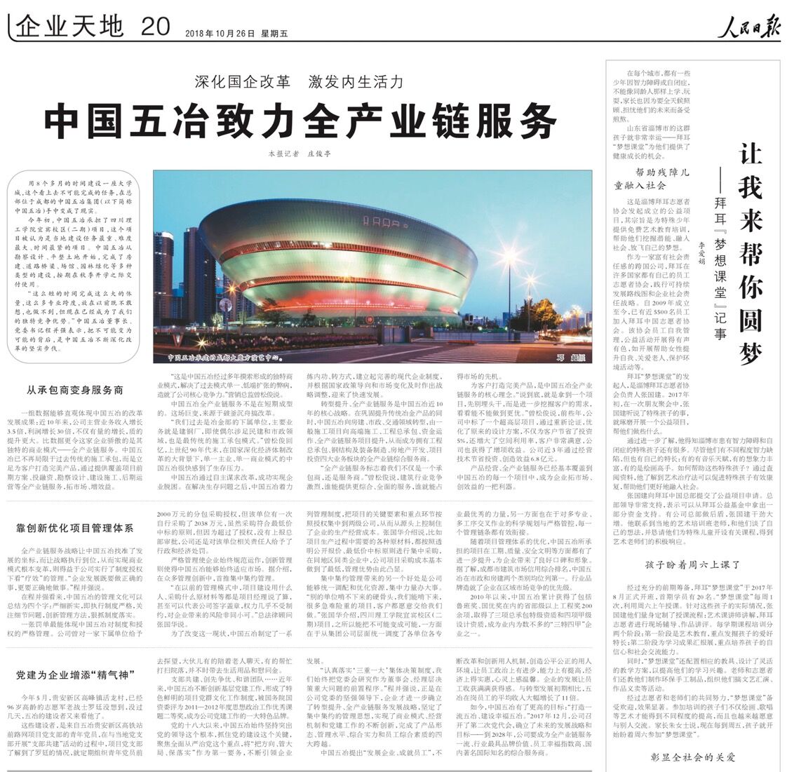 10月26日,《人民日報(bào)》以《深化國企改革?激發(fā)內(nèi)生活力——中國五冶致力全產(chǎn)業(yè)鏈服務(wù)》為題,對(duì)中國五冶集團(tuán)深化國有企業(yè)改革的經(jīng)驗(yàn)和成績進(jìn)行了深度報(bào)道。