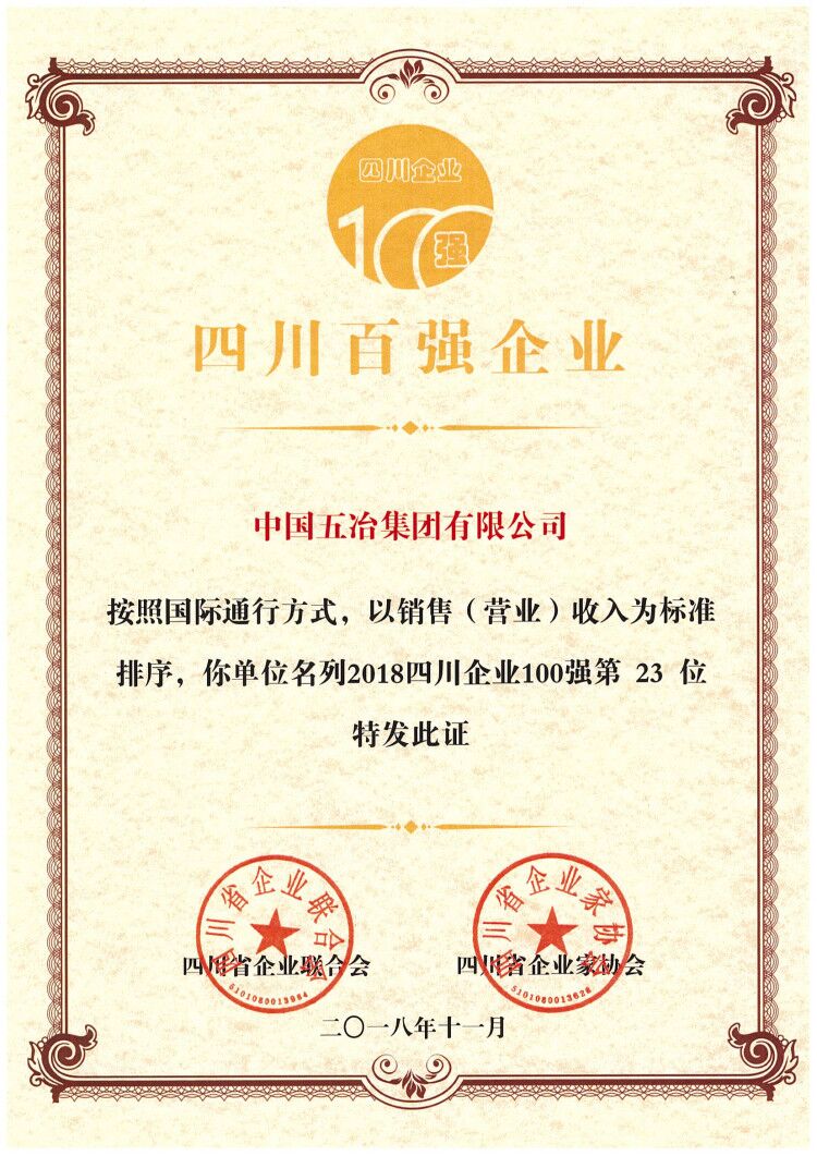 近日,2018年度四川省企業(yè)100強(qiáng)名單權(quán)威發(fā)布,中國五冶集團(tuán)有限公司位居23位,較去年提升兩位。?