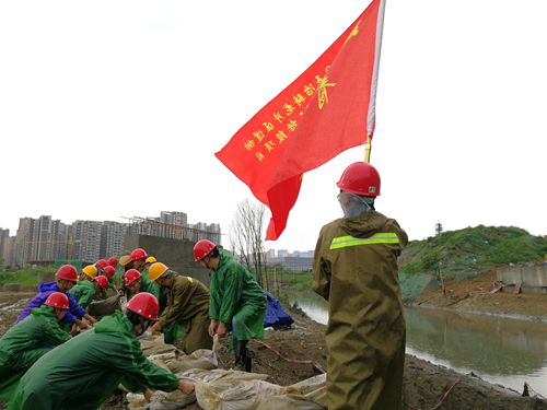 18日清晨,成都騎龍道排工程二、三標段項目值班人員巡查時,發(fā)現(xiàn)大源28線靠欄桿堰處排水管道出水口已被淹沒。此時風疾雨大,水流裹夾著泥沙和樹枝預估1小時內便會漫過河堤涌進修建的路基、檢查井。得知消息后,項目部立即啟動防洪救災應急預案,組織全體青年先鋒突擊隊員,兩兩配合填裝砂袋,堆碼擋水坎,做好引流排水工作。僅三小時,就在橋臺兩端砌筑了長50多米的沙袋堤壩。淋濕了雨,汗浸了背,每位隊員卻都笑容滿面。項目經理向貴學感慨到:“平時看著這群年輕人文質彬彬,但緊急時刻都敢沖敢上、能干肯干,大家都是好樣的!”