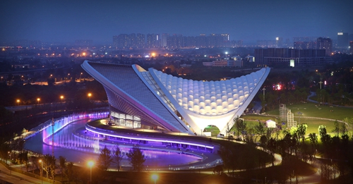 據(jù)悉,成都露天音樂公園項目位于成都市北三環(huán)鳳凰山腳下,占地面積37.9萬平方米,其中,綠化面積25.8萬平方米,水域面積2.9萬平方米,園林建筑面積3.9萬平方米,總投資10.5億元人民幣,是國內(nèi)唯一高度融入鳳凰元素、以露天音樂為主題的超大型國際一流城市公園,集文化演藝、休閑娛樂、露營體驗、旅游觀光等功能為一體,成都市打造“國際音樂之都”的代表性項目。公園共劃分出五座風格迥異、各具特色的演藝劇場,并形成三大創(chuàng)意功能區(qū),有主舞臺、古琴臺、車庫、北展廳等附屬建筑11座,其核心建筑主舞臺是當前世界上最大的全景聲半室內(nèi)半露天的雙面舞臺,擁有1萬平米的穹頂天幕。